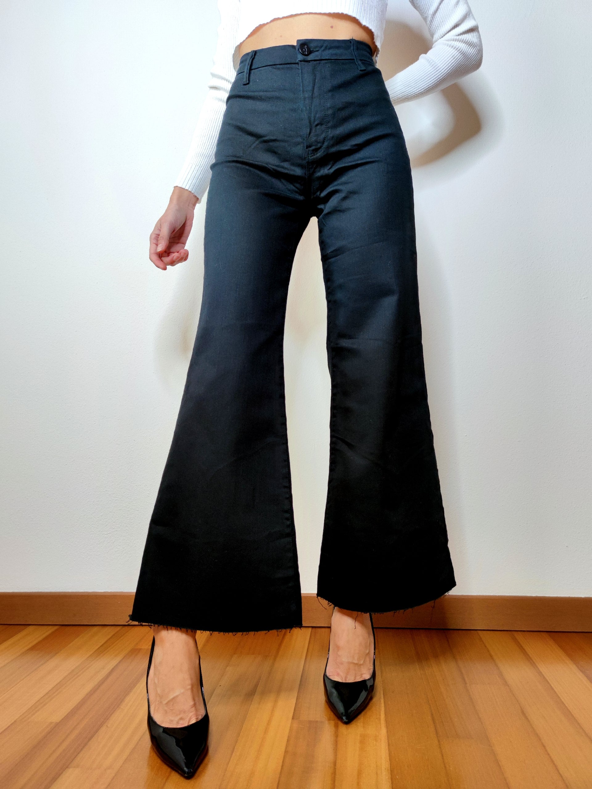Jeans a zampa senza tasche anteriori, con frangette alla caviglia