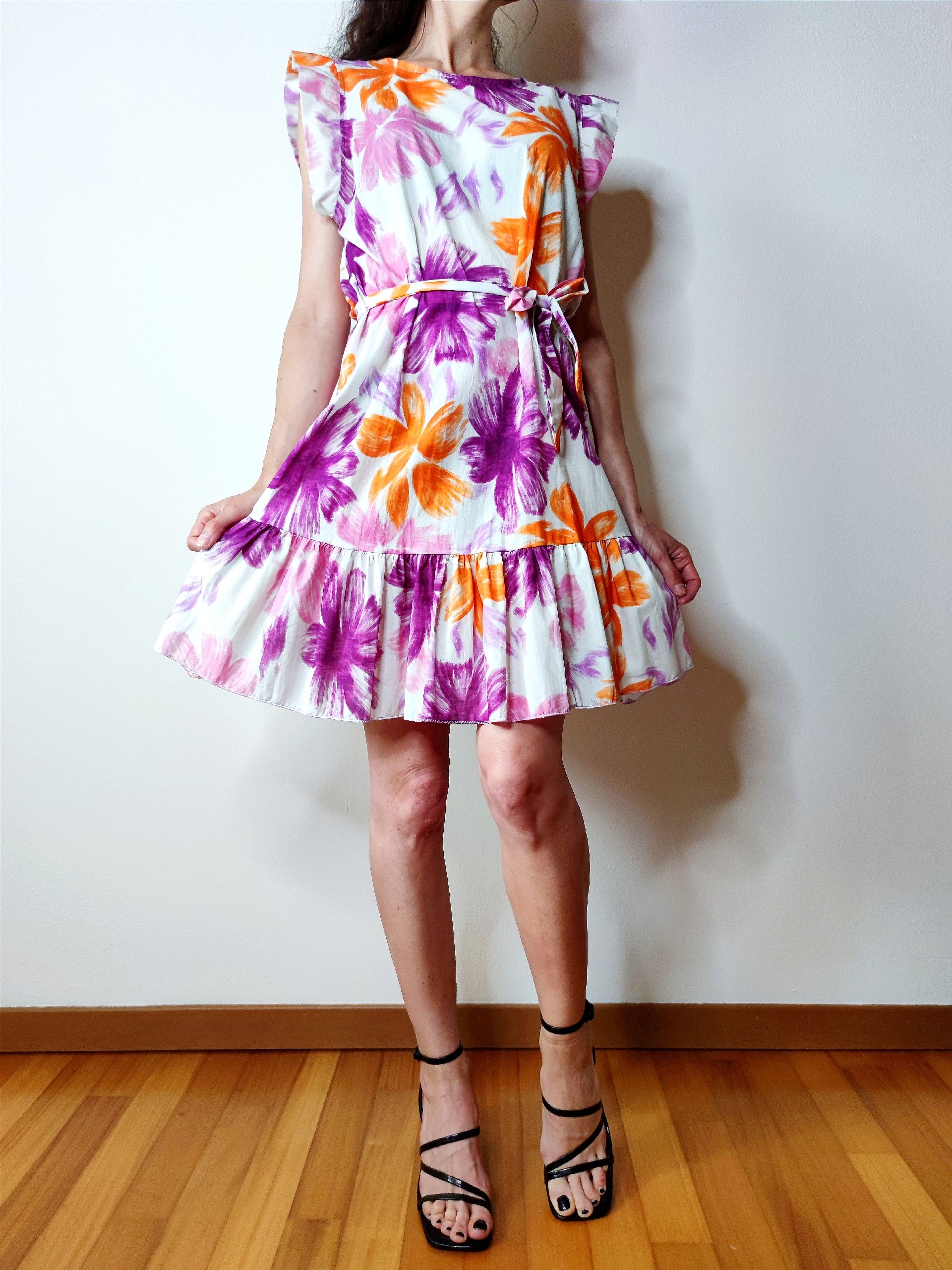 Scamiciato realizzato in cotone di alta qualità, fantasia floreale, è dotato di una pratica fusciacca sottile in vita che permette di personalizzare la vestibilità per un fit perfetto.