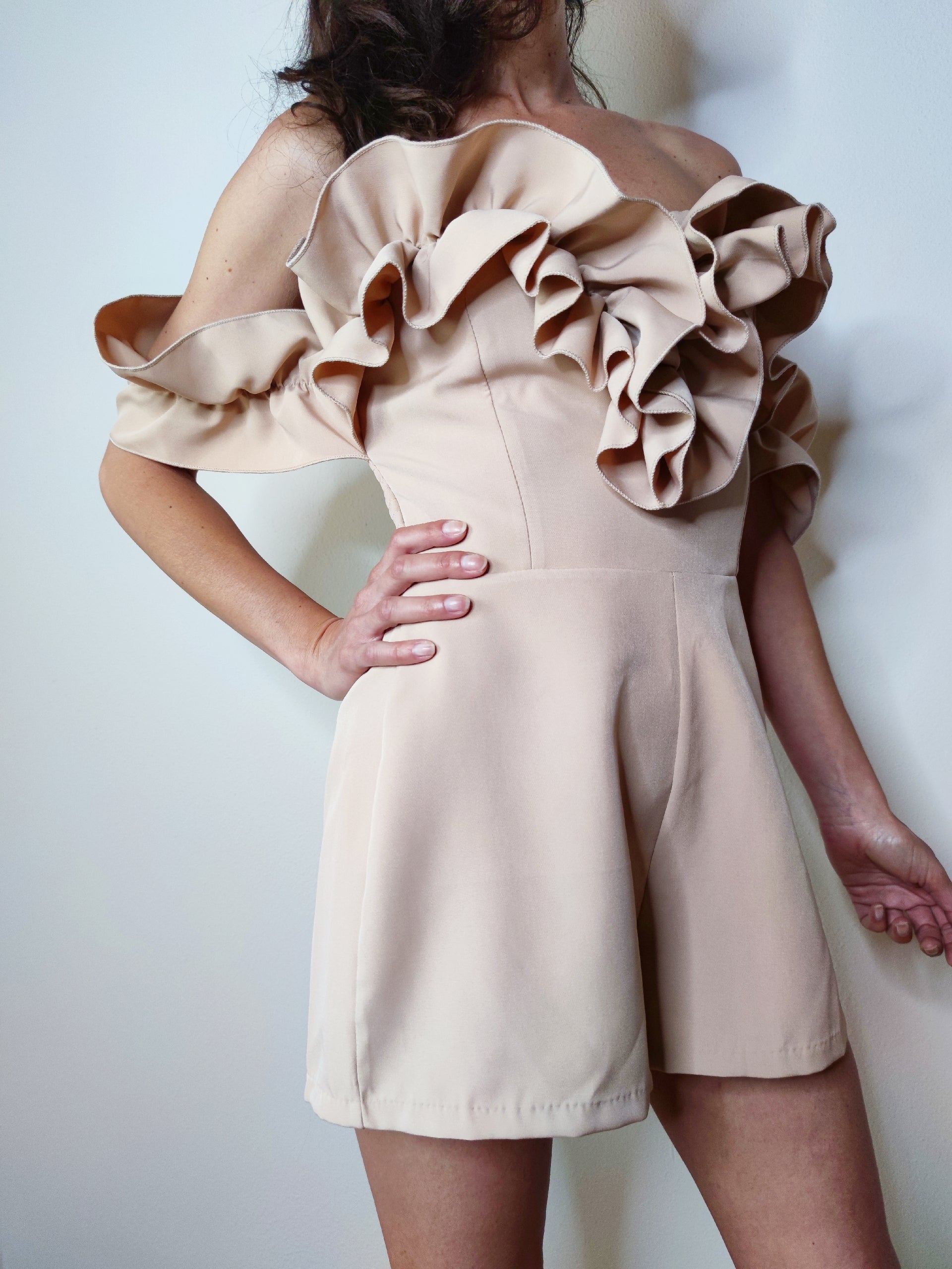 Tutina realizzata in tessuto di qualità che offre un look di tendenza grazie al volant davanti e alle spalline morbide regolabili, presenta una fascia elastica sulla schiena che dona un fit perfetto